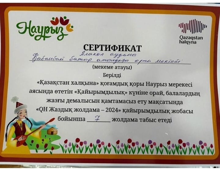 "QR Жаздық Жолдама" қайырымдылық жоба » Қабанбай батыр атындағы орта мектеп