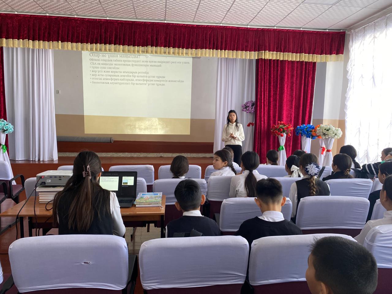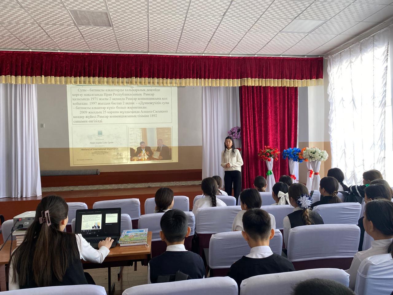 2-ақпан Дүниежүзілік сулы-батпақты алқаптар күніне орай Алакөл мемлекеттік табиғи қорығының қызметкерлері экологиялық ағарту бөлімінің маманы Е.Тыныштыков, музей меңгерушісі Д.Шаріпхан оқушылармен кездесті.Кездесу сулы-батпақты алқаптардың не үшін маңыздылығын туралы оқушыларға мәліметтер бере отырып, презентациялар көрсетіп, түсіндірме жұмыстарын жүргізді Мақсаты: сулы-батпақты алқаптар таныстыру.