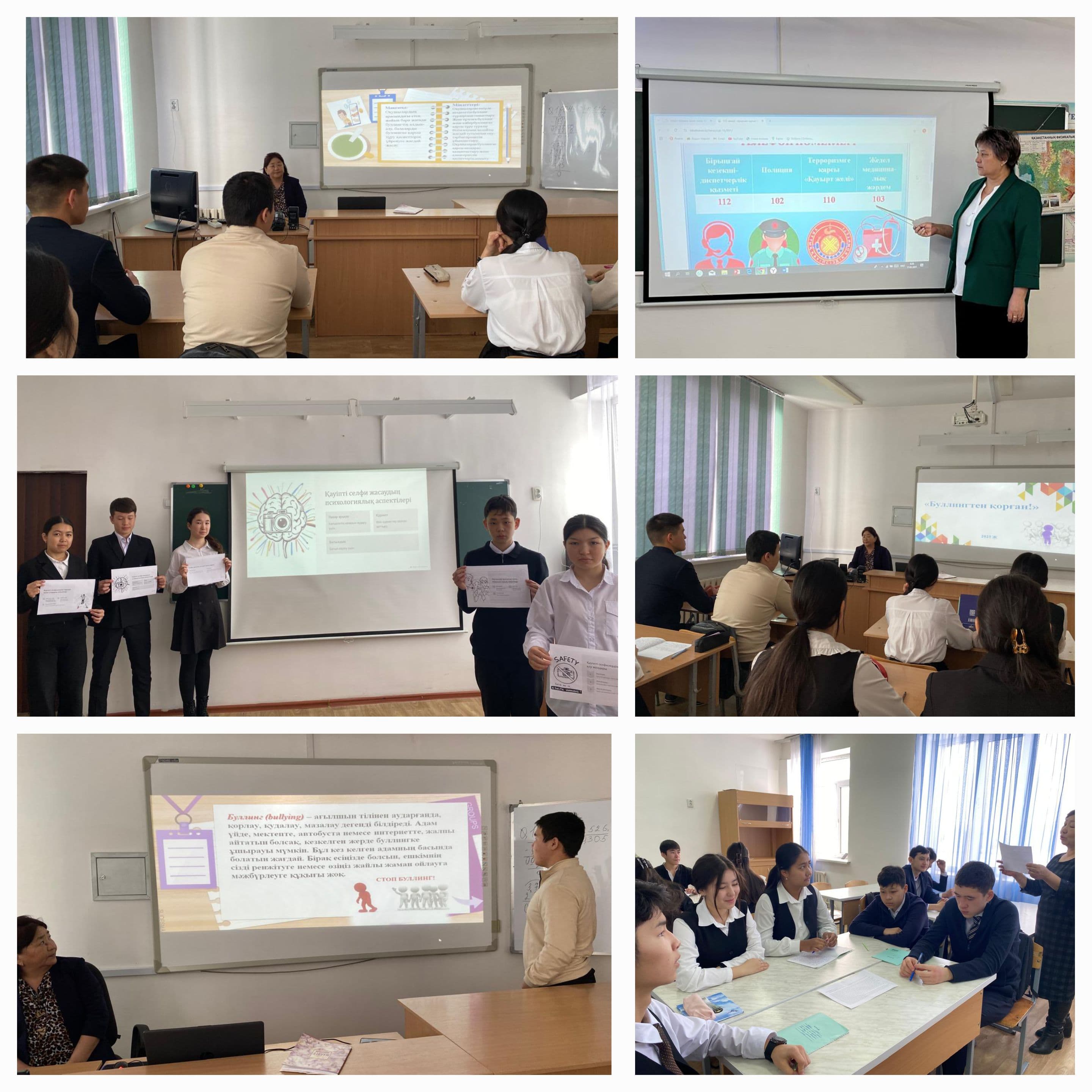 «Біртұтас тәрбие бағдарламасы» аясындағы «Құқықтық тәртіп және әлеуметтік жауапкершілік» тақырыбында сынып сағаттары мен "Қауіпсіздік сабақтары" 1-11 сыныптарда өткізілді.