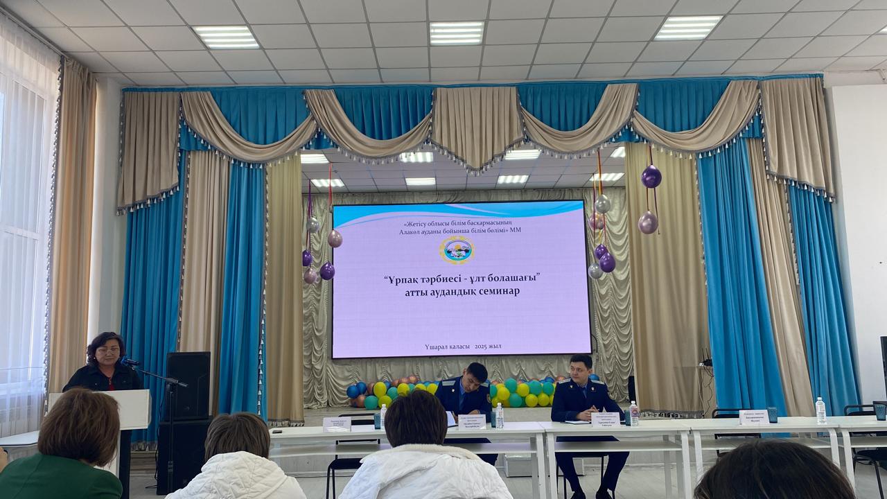 «Заң және тәртіп» бағдарламасын жүзеге асыру аясында, Алакөл ауданы прокуратурасымен Үшарал қаласының «А.Байтұрсынов» атындағы орта мектебінде «Ұрпақ тәрбиесі-ұлт болашағы» атты аудандық семинар өткізілді.