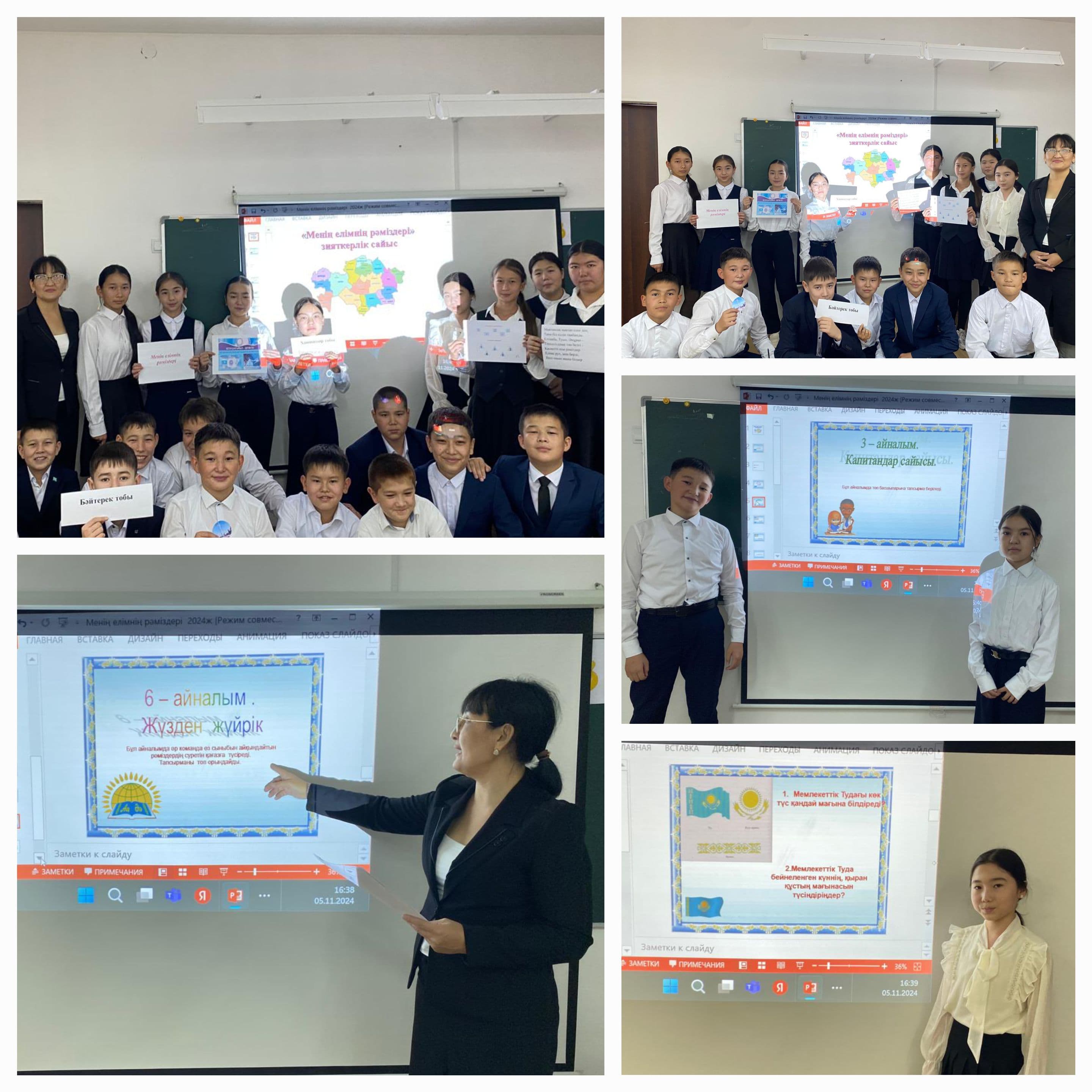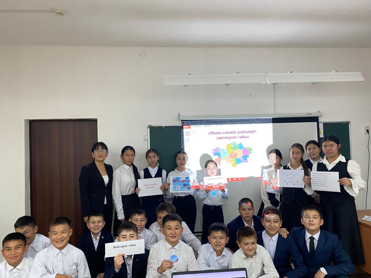 «Менің елімнің рәміздері» тақырыбында зияткерлік сайыс 7 сыныптар арасында өткізілді. Отанымыздың ұлттық мақтанышы – мемлекеттік рәміздерге арналды. Оқушылардың мемлекеттік рәміздері туралы білімдерін толықтырып, құрметтеуге үйрету.