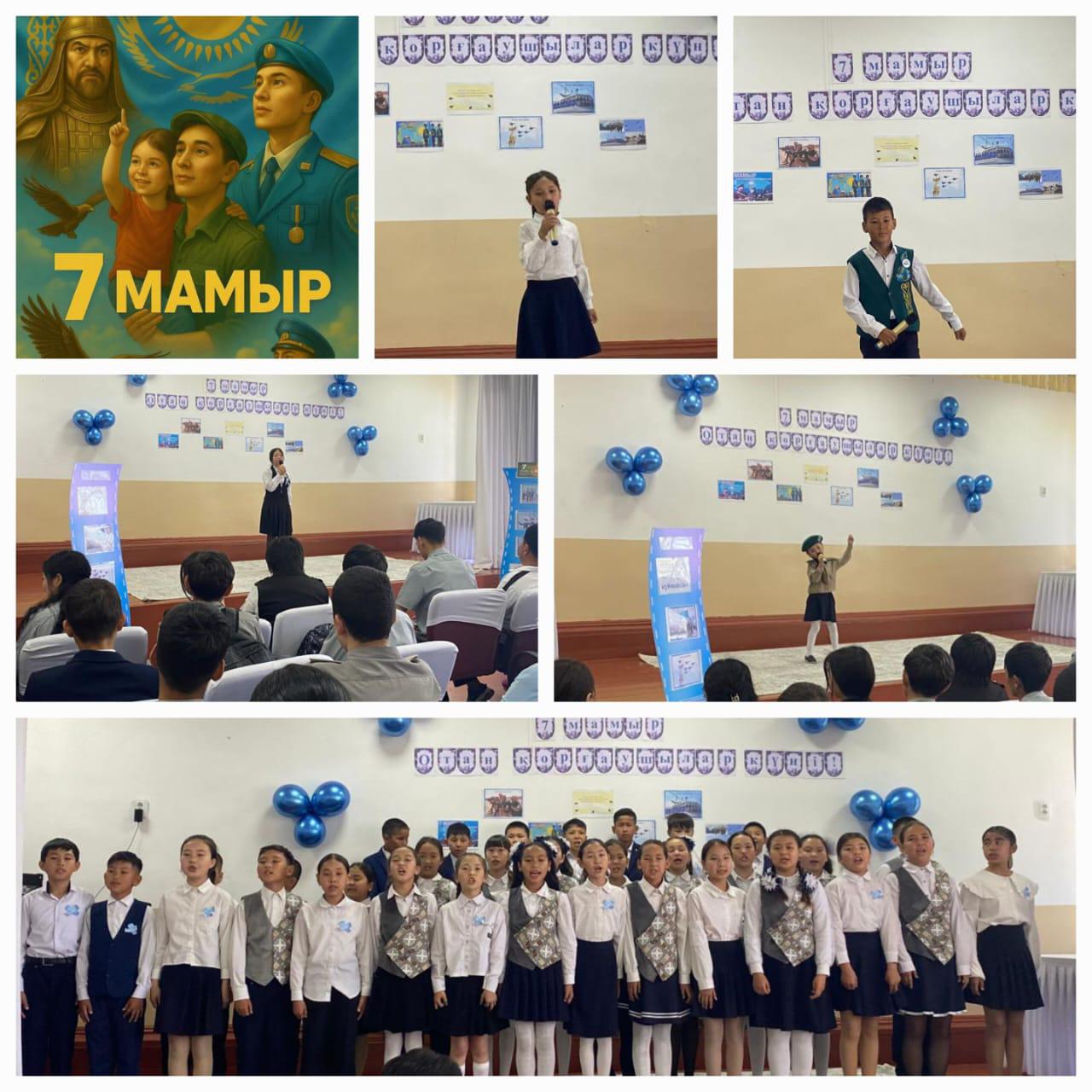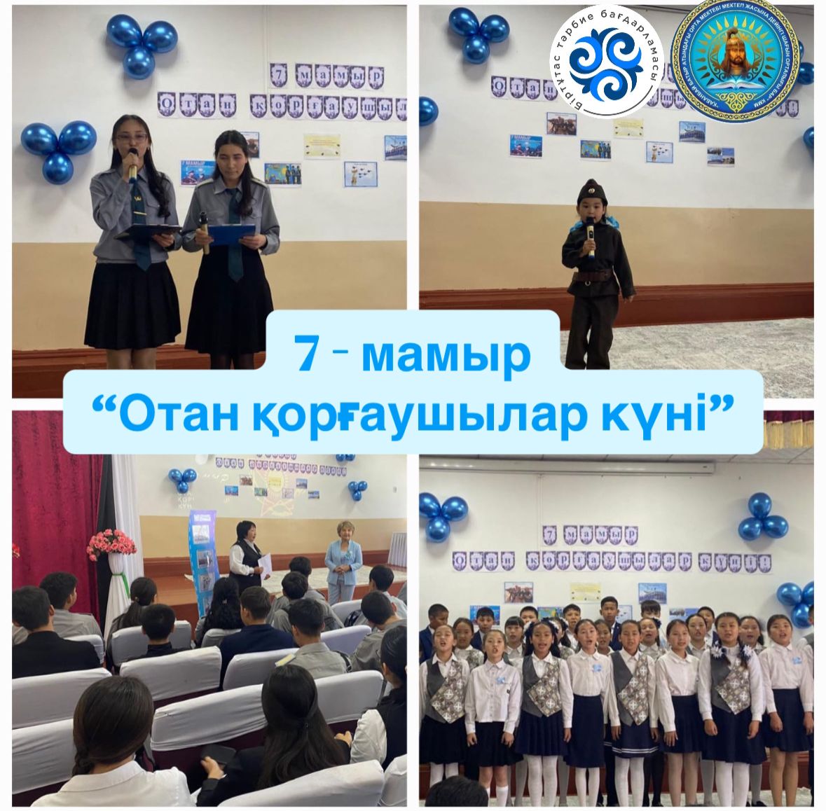 7 мамыр - еліміздің қорғаныс қабілетінің кемелденгенін білдіретін мереке. 7 мамыр - Отан қорғаушылар күніне және 9 мамыр –Ұлы Жеңіс күніне орай мектебімізде «Ұранды ердің - ұрпағы қайсар» тақырыбында концерттік бағдарлама өткізілді. Оқушыларға Ұлы Отанды сүюге, ерлік көрсеткен батырлардың бойындағы ержүректілік, отан сүйгіштік, ұлтжандылық қасиеттерін дәріптеу, Отанын, елін қорғай білуге тәрбиелеу мақсатында ұйымдастырылды.