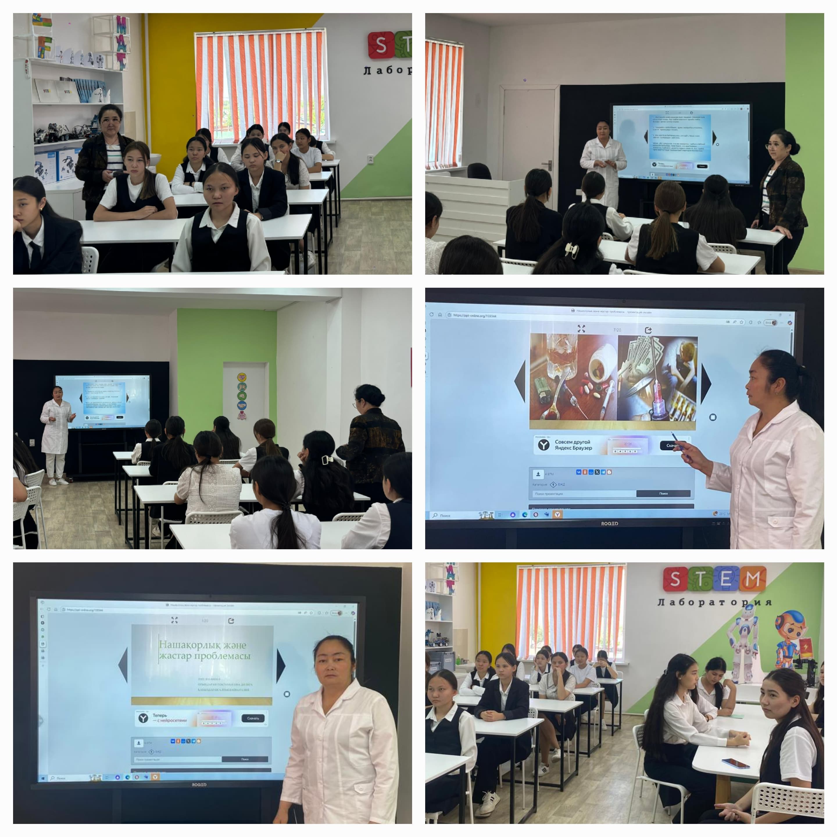«Халықаралық балаларды қорғау күні» аясында «Дәрігер-балалардың жанашыры» тақырыбында директордың ТІЖО А.Жумашева, мектеп медбикесі М.Инсенова оқушыларға дәрістер (жасөспірімдерге денсаулық мәселелері, жыныстық тәрбие, ерте жүктіліктің, нашақорлықтың алдын алу туралы білім беру) оқылып, түсіндірме жұмыстары жасалды.