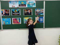 3"А" сыныбында 27-қыркүйек күні "Мемлекеттік рәміздерді құрметтейік" атты сынып сағаты өтті. Сынып сағатының мақсаты ҚР мемлекеттік рәміздері жөніндегі білімдерін кеңейту, оларға мемлекеттік рәміздердің аса маңызды екенін ұғындыру, оны ерекше құрметтеп, мақтан тұту керектігін ашып көрсету; Отаншылдық,ұлтжандылық, өз елін, тегін тарихын сүюге тәрбиелеу; ой- өрісін, танымдық қабілеттерін жеке дара тұлға ретінде тәрбиелеу.