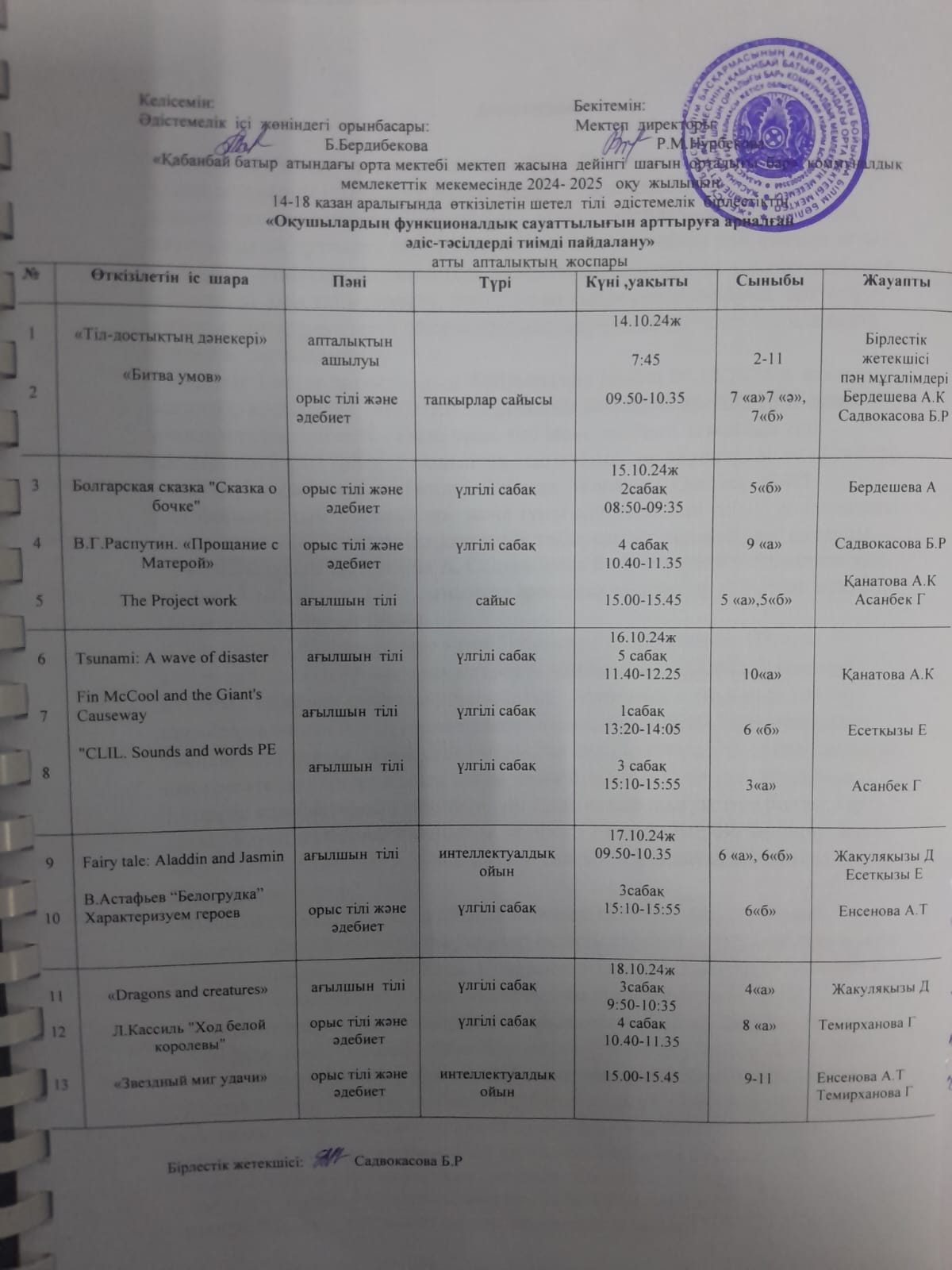 Шетел тілі әдістемелік бірлестігінің апталығы » Қабанбай батыр атындағы орта мектеп