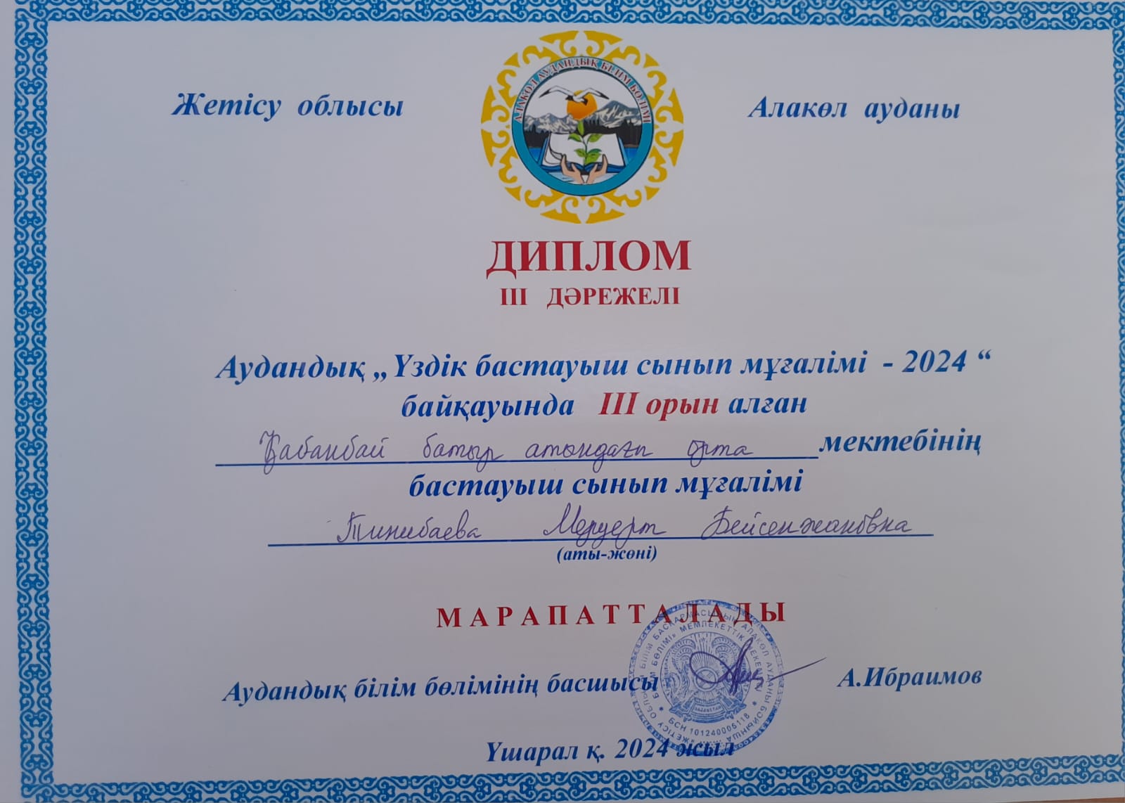 Аудандық «Бастауыш сынып мұғалімі -2024ж» байқауы » Қабанбай батыр атындағы орта мектеп