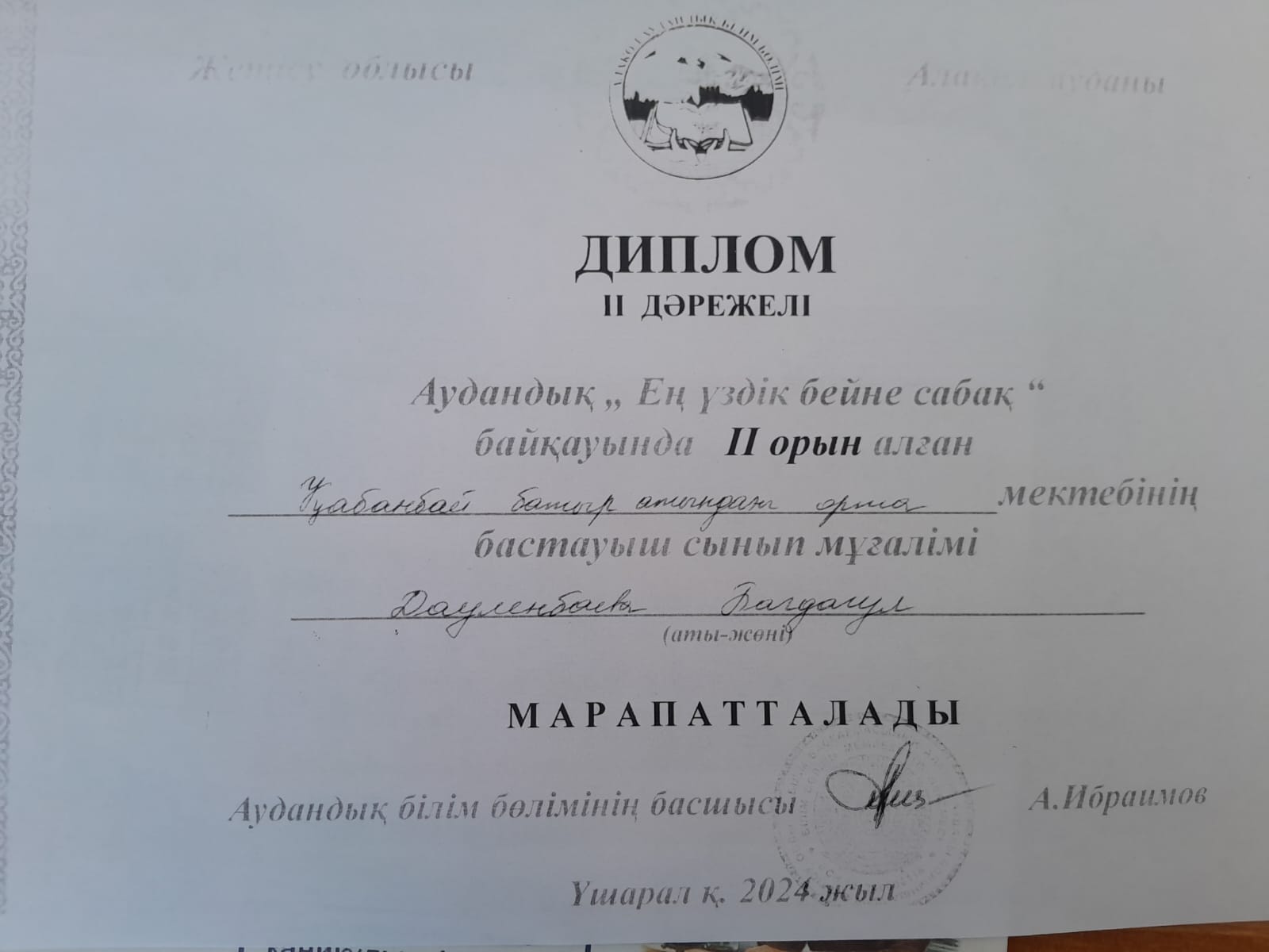 Алакөл ауданы бойынша білім бөлімінің