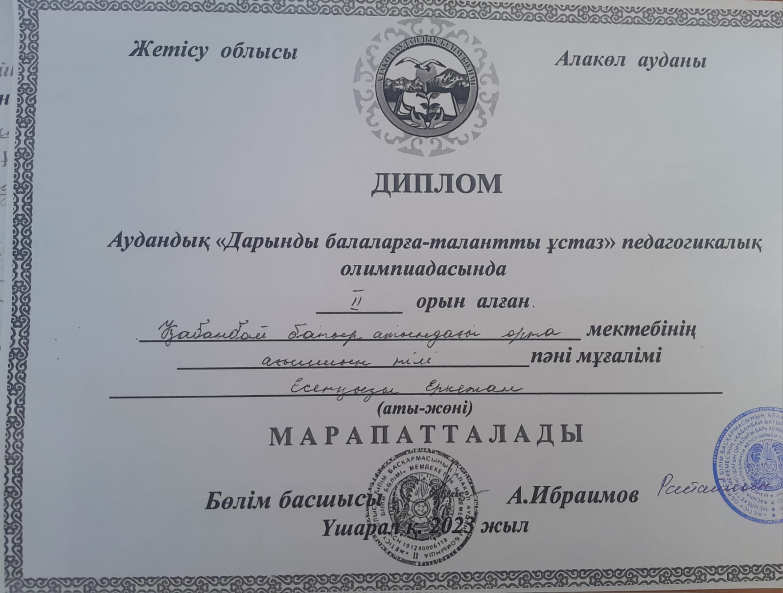 Алакөл ауданы бойынша білім бөлімінің