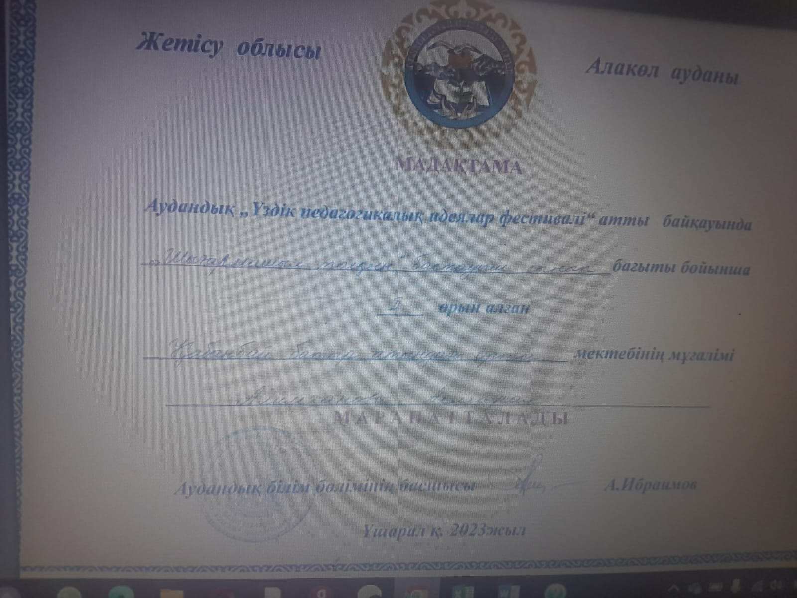 Алакөл ауданы бойынша білім бөлімінің