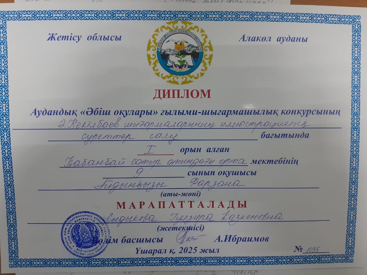 Алакөл ауданы бойынша білім бөлімінің