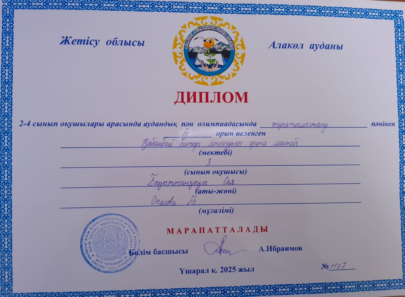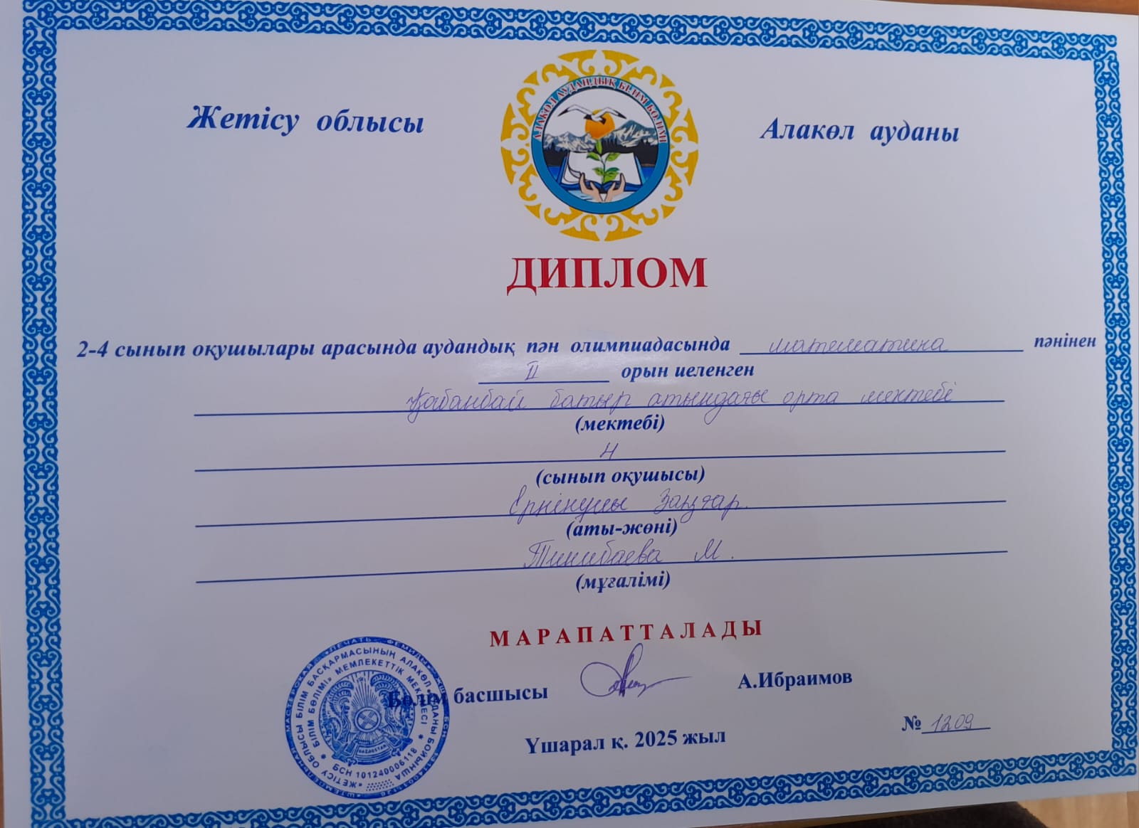 Аудандық пән олимпиадасы » Қабанбай батыр атындағы орта мектеп