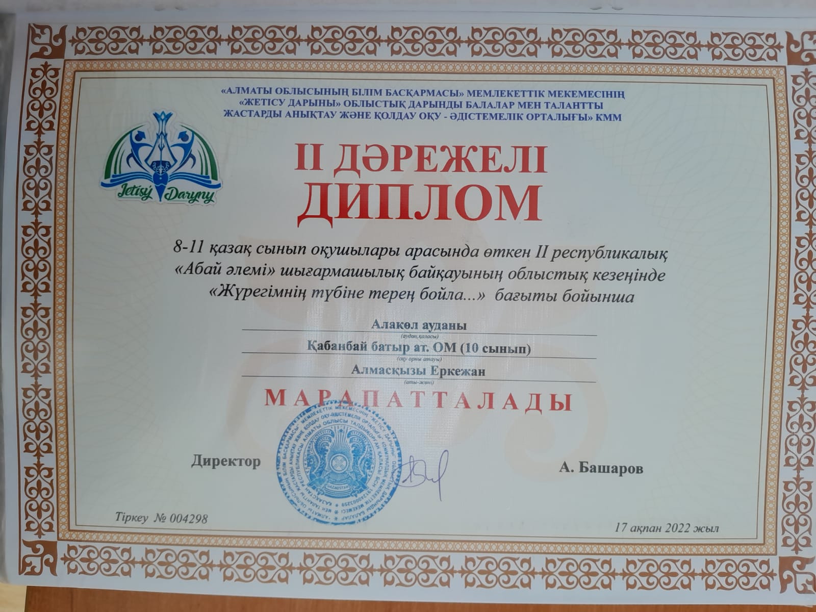 Жетісу облысы білім басқармасының