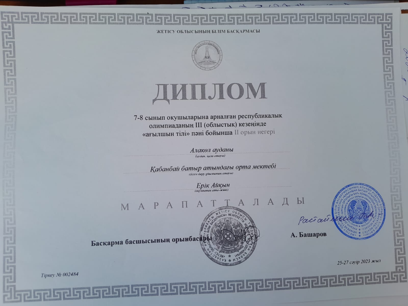 Жетісу облысы білім басқармасының