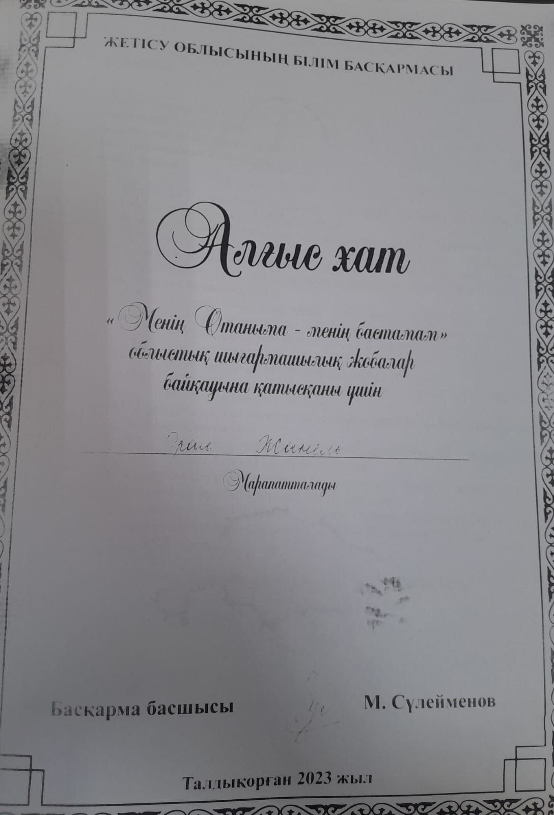 Облыстық шығармашылық жоба » Қабанбай батыр атындағы орта мектеп